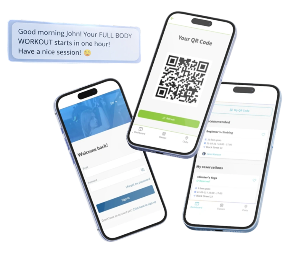 Mobile app allows new members to join your club quickly and conveniently from their smartphone. Users can register, purchase memberships or passes, book classes, and schedule personal training sessions without visiting the reception desk.